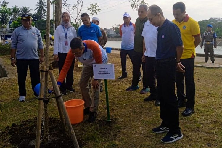 JAKARTA, KOMPAS.com - Pj Gubernur DKI Jakarta Heru Budi Hartono secara simbolis menanam 20 pohon di kawasan Waduk Kampung Rambutan 2, Ciracas, Jakarta Timur, Jumat (21/7/2023).